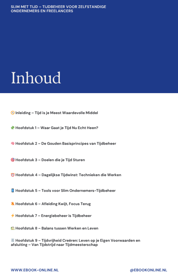 Inclusief: werkbladen, een weekplanner, toolgids, tijdscan-template en 10 gewoontes van succesvolle ondernemers.